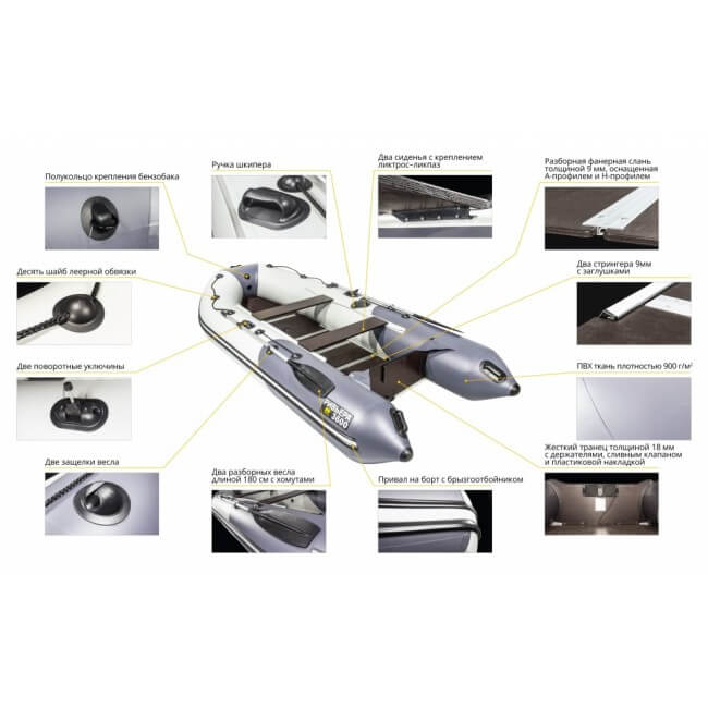 Лодка оснащена килем, что позволяет быть ей более устойчивой на воде и гораздо быстрее выходить на глиссирование.