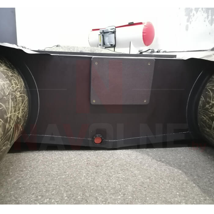 Надувная лодка имеет жестко вклеенный транец толщиной 18 мм. из водостойкой многослойной фанеры.