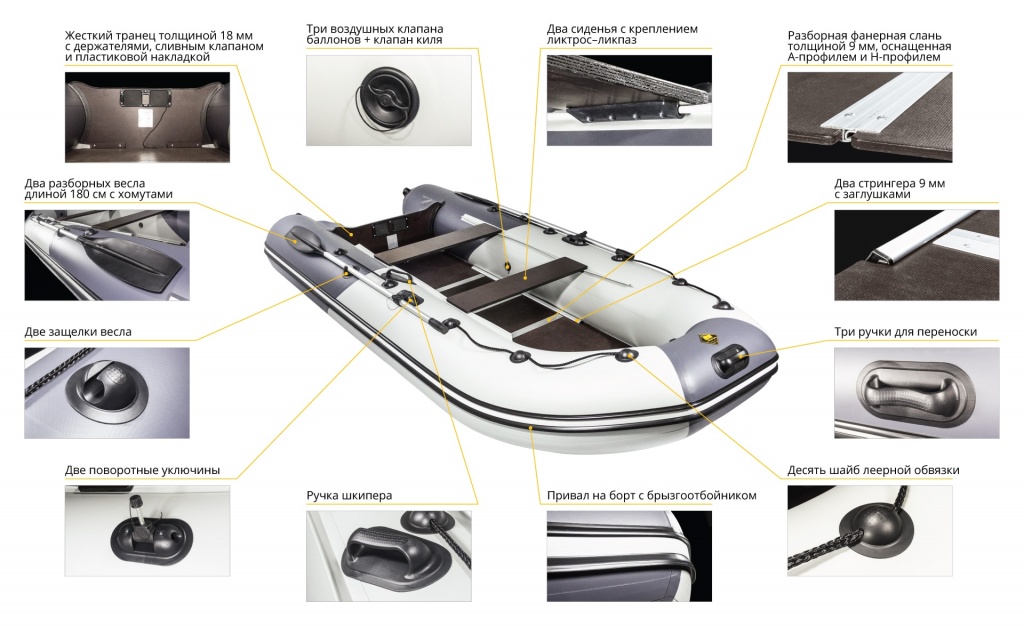 Лодка оснащена килем, что позволяет быть ей более устойчивой на воде и гораздо быстрее выходить на глиссирование.