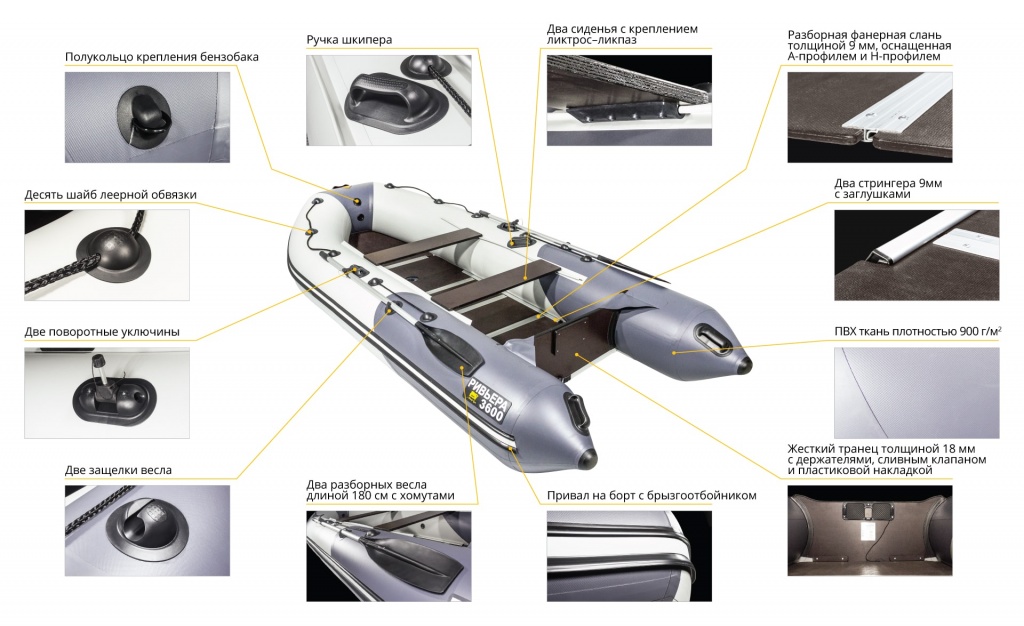 Надувная лодка Ривьера Компакт 3400 СК — это надувная лодка среднего размера, позволяющая своему владельцу комфортно чувствовать себя в любых условиях на любой акватории. Конструкция жёсткого пола позволяет собрать и установить его без дополнительных усилий. В кокпите лодки могут комфортно расположиться два-три человека с грузом и снаряжением, рассчитанным на несколько дней автономного похода.