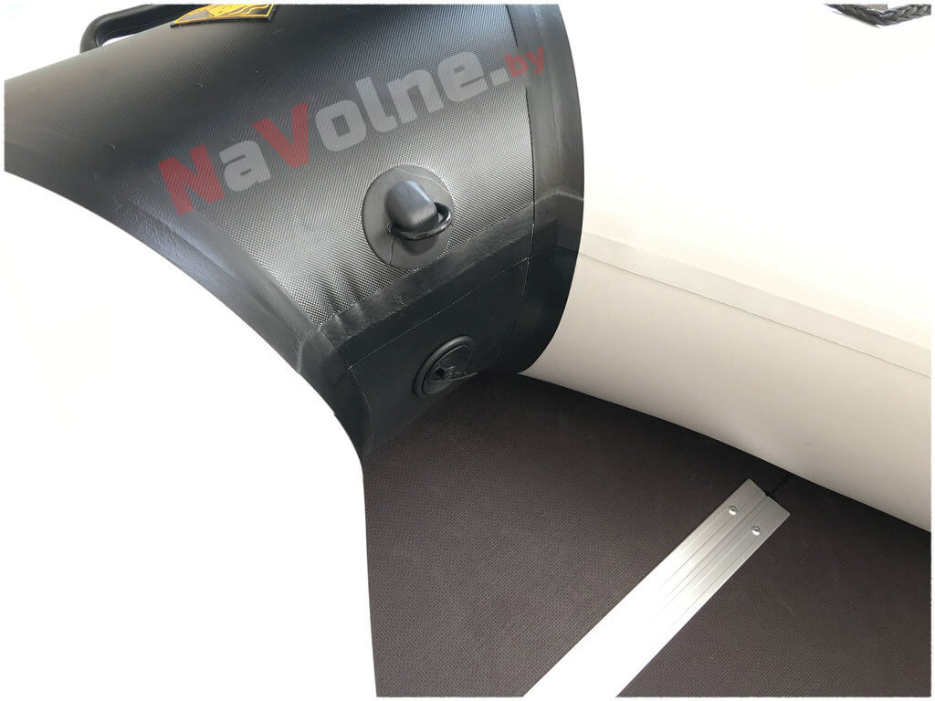 Во-вторых, в носовой части лодки установлено кольцо для крепления бензобака. Обычно внешний топливный бак устанавливают в носовую часть лодки д ля противовеса. При движении бак съезжает к корме, теперь его можно легко зафиксировать.