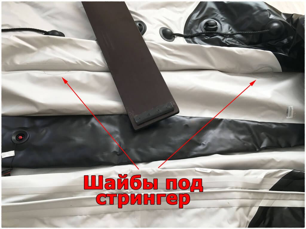 В-третьих, по днищу лодки, в местах установки стрингеров, добавлены дополнительные шайбы усиления, как раз в тех местах, куда упираются концы стрингеров. Это добавит долговечности Вашей лодке.